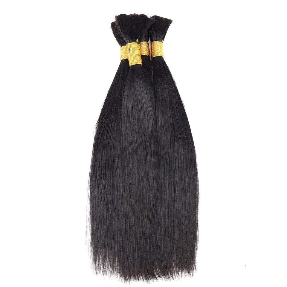 【Hair Material】:Straight BULK Indian Remy Hair Bundle,No Synthetic Mixed,No Shedding, No Tangle. Soft, Smooth.It Can Be Used for Sewing Wig Cover.